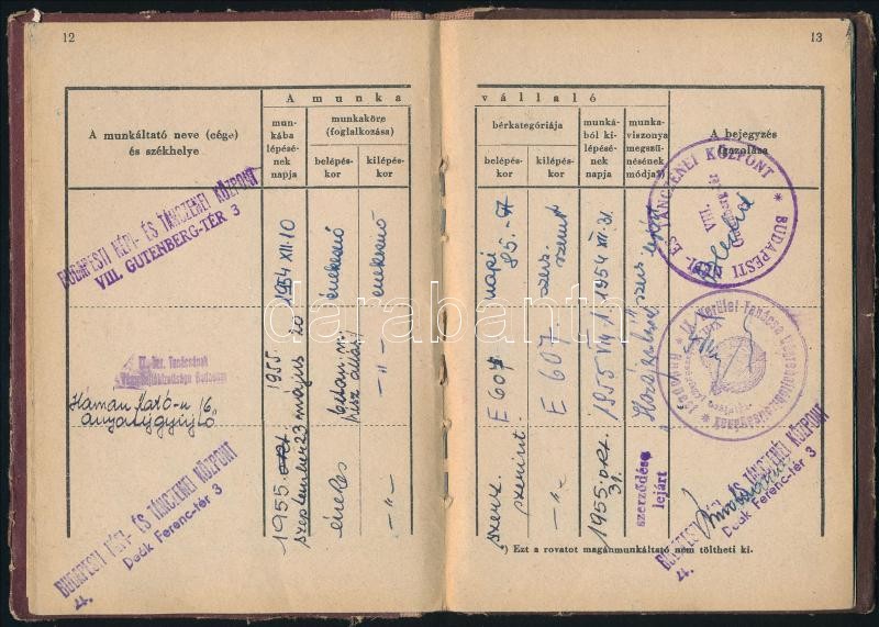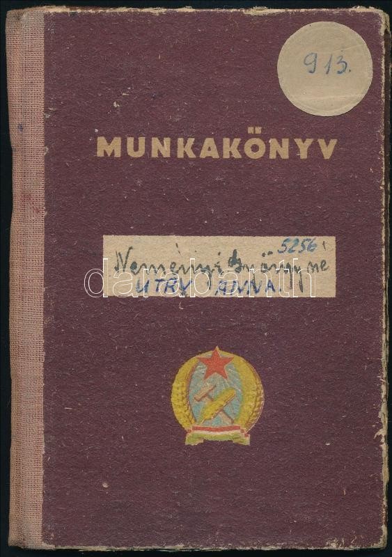 1952 Utry Anna (1907-1968) énekesnő munkakönyve, bejegyzésekkel https://www.darabanth.com/hu/406-Gyorsarveres/406.0/Mutargy-papirregiseg-egyeb/Okmanyok~500018/1952-Utry-Anna-1907-1968-enekesno-munkakonyve-bejegyzesekkel~II2510194