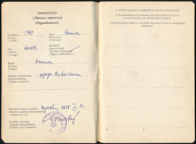 1978 Hajós szolgálati igazolvány, fényképes https://www.darabanth.com/hu/406-Gyorsarveres/406.0/Mutargy-papirregiseg-egyeb/Okmanyok~500018/1978-Hajos-szolgalati-igazolvany-fenykepes~II2511694