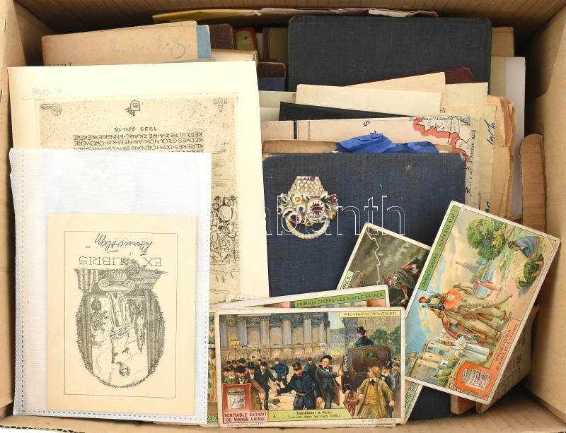 Leírás: Nagy doboznyi vegyes papírrégiség