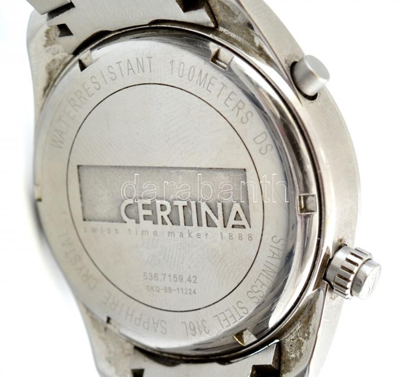 Certina DS Pilot svájci fém férfi kvarc karóra, fém szíjjal, elemmel, működik, de állítása hibás / Certina DS Pilot quartz swiss men's watch, with battery with fault