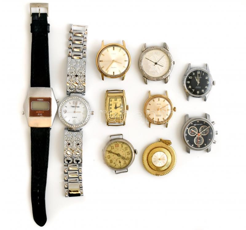 Leírás: Vegyes karóratétel, sérült, kopott. (Timex, Kelton, Polaris stb.)