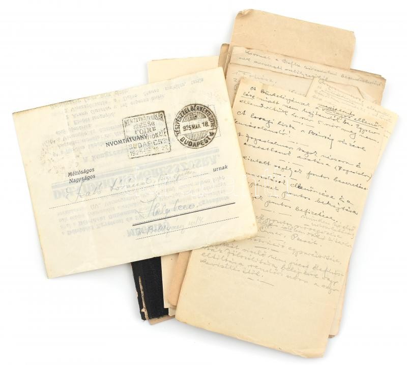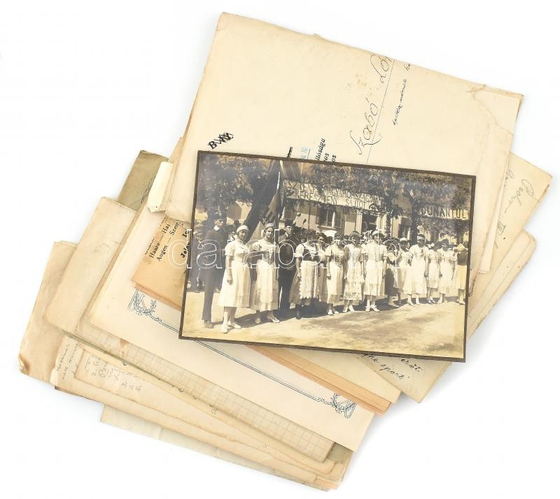 Leírás: 1918-1925 Szabó Lóránd pécsi jogászhallgató dokumentumai. Mecsekaljai Bánság, DEFHE, ÉME, stb fotók, meghívók, kézzel írt beszámolók, érdekes anyag.