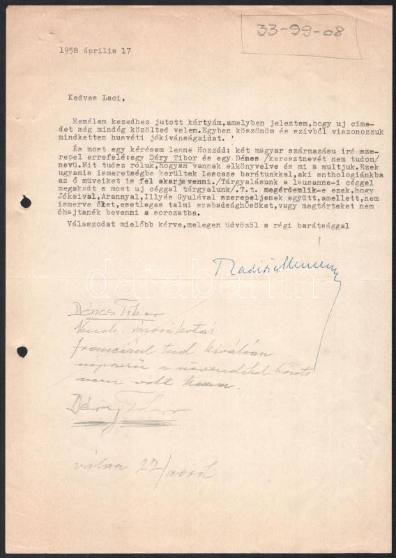 1958 Radisics Elemér (1884-1972) író, újságíró gépelt levele, aláírásá... https://www.darabanth.com/hu/406-Gyorsarveres/406.0/Mutargy-papirregiseg-egyeb/Tortenelmi-dokumentumok-keziratok-erdekessegek~500019/1958-Radisics-Elemer-1884-1972-iro-ujsagiro-gepelt-levele-alairasaval~II2508478