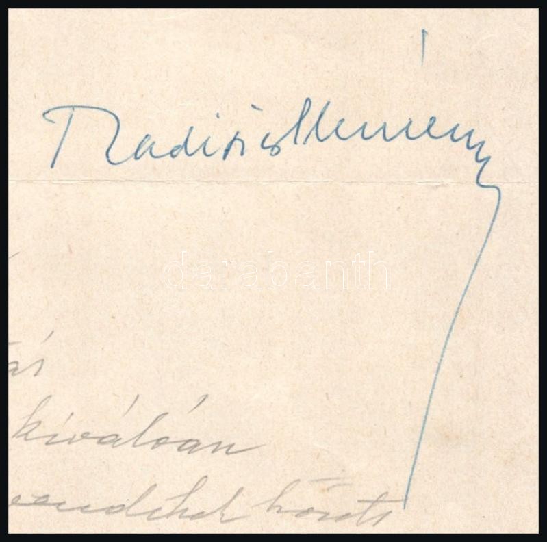 Leírás: 1958 Radisics Elemér (1884-1972) író, újságíró gépelt levele, aláírásával