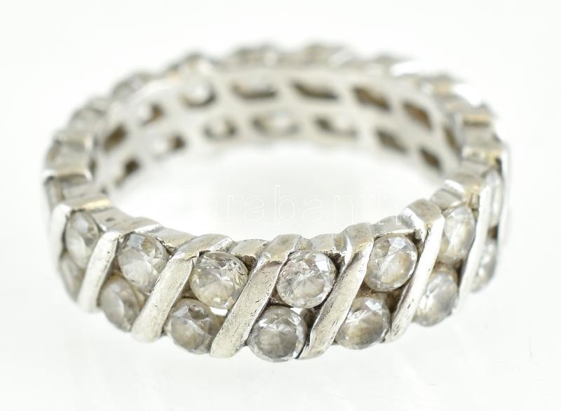 Leírás: Ezüst(Ag) karikagyűrű kövekkel gazdagon kirakva, jelzett, méret: 50, bruttó: 3,9 g