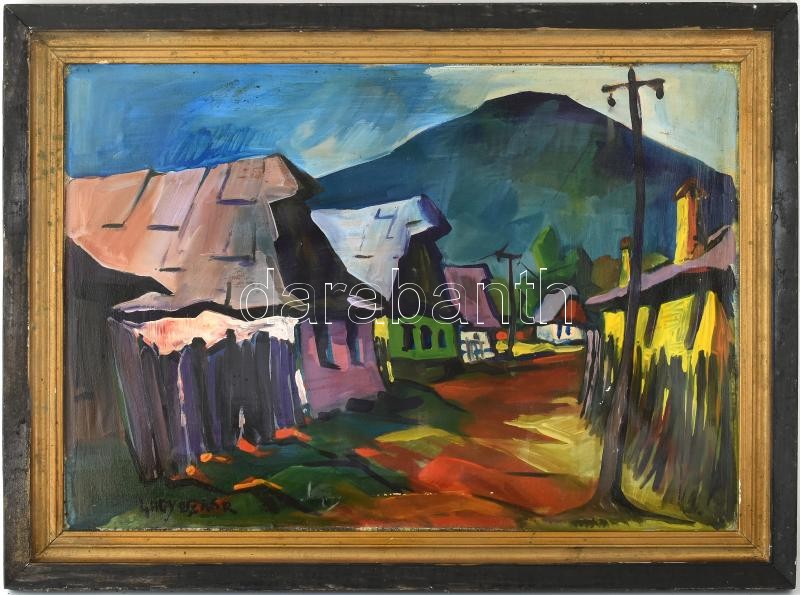 Leírás: Nagy Oszkár jelzéssel: Utcarészlet. Olaj, vászon. Javított, sérült. Dekoratív, kissé sérült fa keretben. 46x65,5 cm