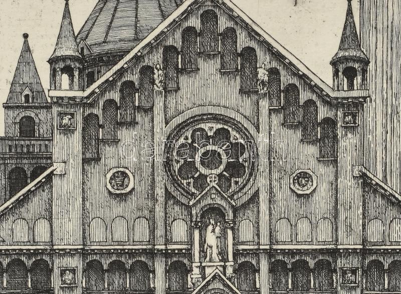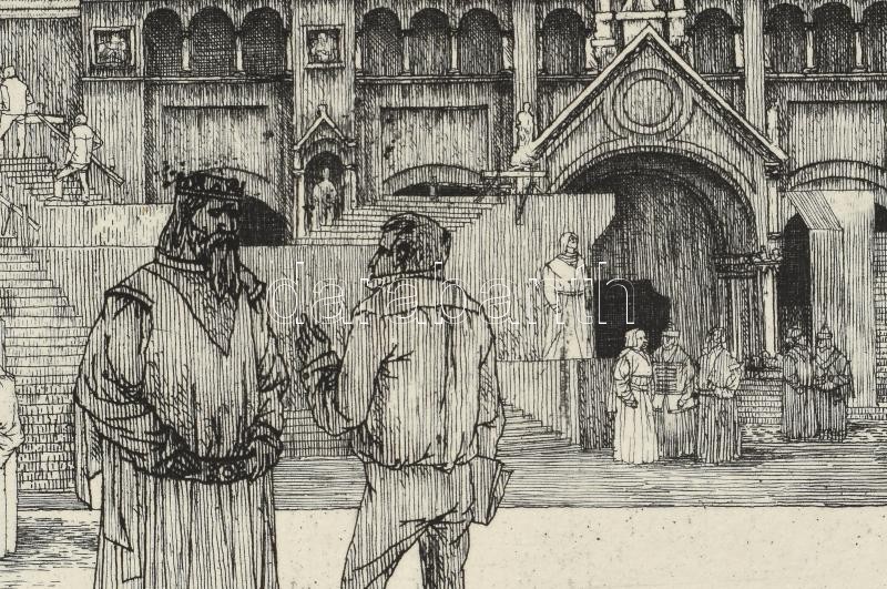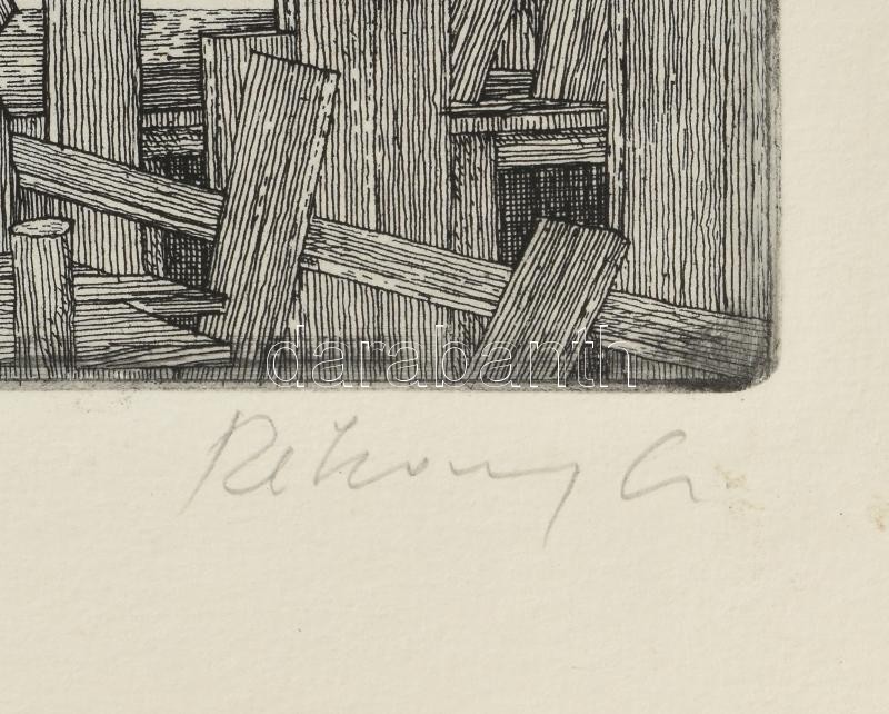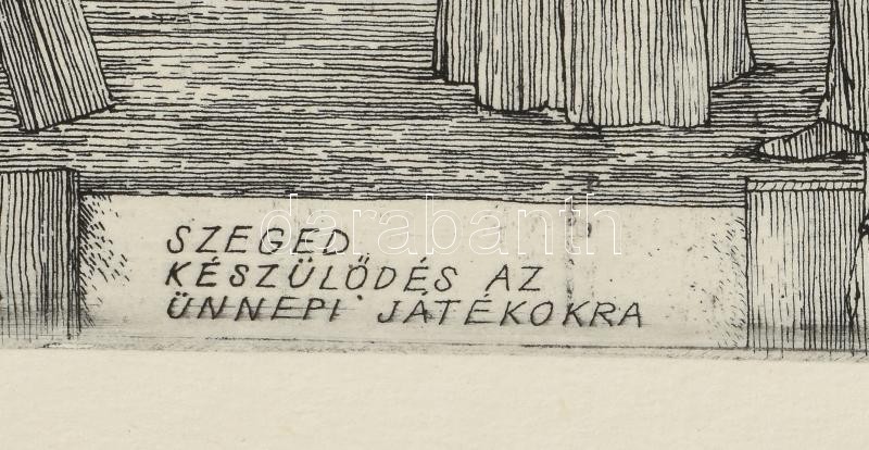 Leírás: Rékassy Csaba (1937-1989): Szeged - készülődés a szabadtéri játékokra, rézkarc-papír, jelzett, keretben 19,5x29,5 cm