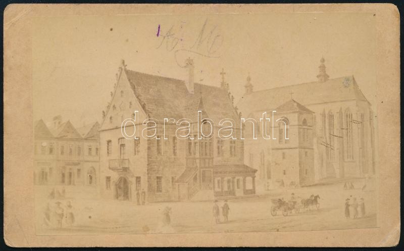 Leírás: cca 1880 Bártfa, városrészlet, metszetről készült fotó Divald Károly műterméből, felületén ráírással, 6,5×10,5 cm