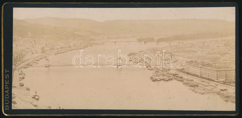 Leírás: cca 1880 Budapest, kilátás a Lánchídra és Margit hídra, keményhátú fotó, 10×20,5 cm