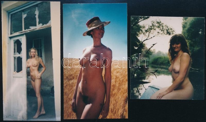 cca 1985 Menesdorfer Lajos (1941-2005) budapesti fotóművész hagyatékából, 7 db jelzés nélküli vintage fotó és/vagy NEGATÍV, az aktfényképezés műfajából, a papírképek nem a tételben szereplő negatívokról készültek, 6x6 cm és 9,5x4,6 cm között