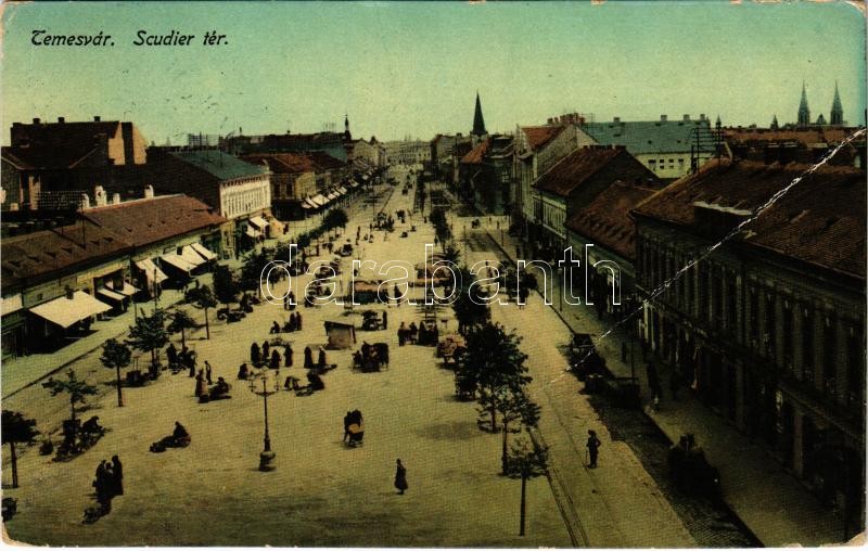 1914 Temesvár, Timisoara; Scudier tér, piac / market square (fa) https://www.darabanth.com/hu/407-Gyorsarveres/407.0/Kepeslapok/Erdely~1000005/1914-Temesvar-Timisoara-Scudier-ter-piac-market-square-fa~II2520462