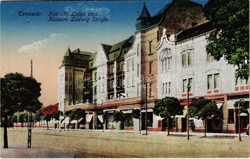 Temesvár, Timisoara; Kossuth Lajos utca, üzletek / street view, shops https://www.darabanth.com/hu/407-Gyorsarveres/407.0/Kepeslapok/Erdely~1000005/Temesvar-Timisoara-Kossuth-Lajos-utca-uzletek-street-view-shops~II2516767