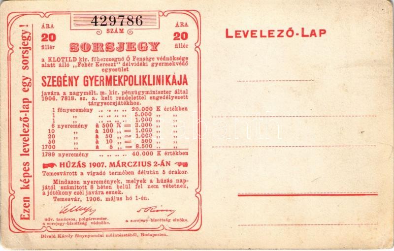Temesvár, Timisoara; Szegénygyermek poliklinika. Hátoldalon sorsjeggyel a poliklinika javára / children hospital with its charity lottery ticket on the backside
