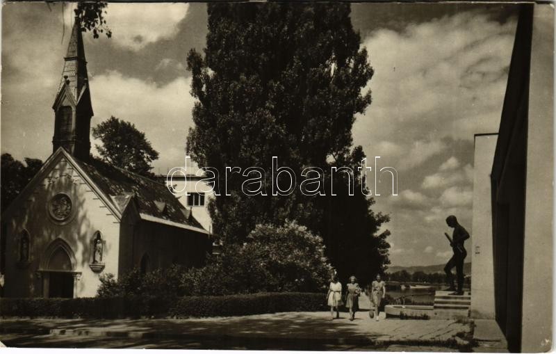 1959 Pöstyén, Piestany; templom, fürdő / church, spa https://www.darabanth.com/hu/407-Gyorsarveres/407.0/Kepeslapok/Felvidek~1000006/1959-Postyen-Piestany-templom-furdo-church-spa~II2518787