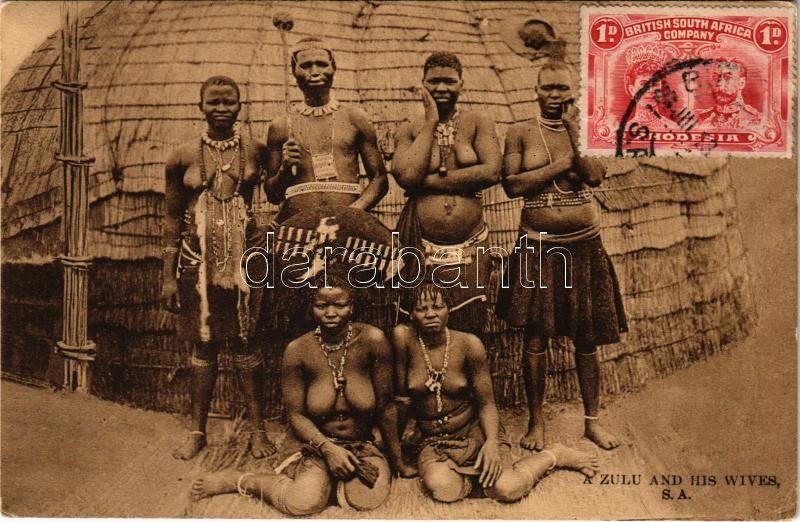 A Zulu and his wives. South African folklore, half-naked women https://www.darabanth.com/hu/407-Gyorsarveres/407.0/Kepeslapok/Folklor~1000034/A-Zulu-and-his-wives-South-African-folklore-half-naked-women~II2519669