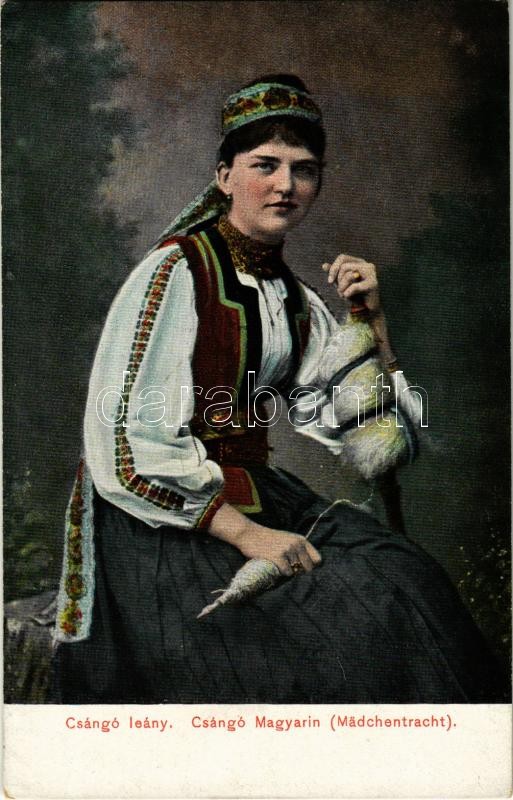 Csángó leány. Wertheim Zsigmond kiadása / Csángó Magyarin (Mädchentrac... https://www.darabanth.com/hu/407-Gyorsarveres/407.0/Kepeslapok/Folklor~1000034/Csango-leany-Wertheim-Zsigmond-kiadasa-Csango-Magyarin-Madchentracht-Hungarian-folklor~II2513022