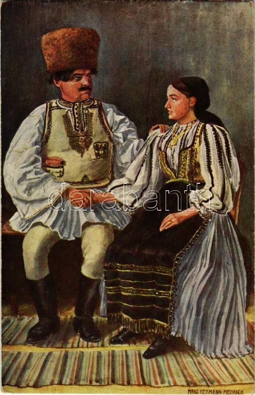Pojánai román fiatal pár. Erdélyi népviseletek / Junges rumänisches Paar aus Pojana. Siebenbürger Volkstracht / Transylvanian folklore, romantic couple from Poiana s: Hans Hermann