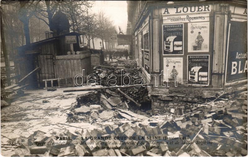 Paris, Crue de La Seine (Janvier 1910) Aprés l'Inondation, Maison d'angle du Boulevard Saint-Germain et de la Rue Solférino déchaussée par les eaux / ruins after The Great Flood of Paris