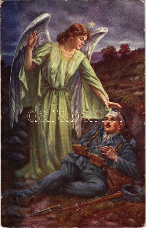 1916 Der Gott, der alle Welten regiert, wird auch dich nicht verlassen! / Isten veled van! / WWI Austro-Hungarian K.u.K. military, injured soldier with angel. O.K.W. 4006.