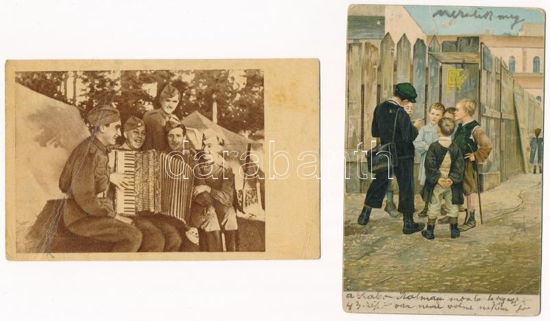 Leírás: 16 db RÉGI motívum képeslap vegyes minőségben: gyerek, katonai, művész / 16 pre-1945 motive postcards in mixed quality: children, art, military