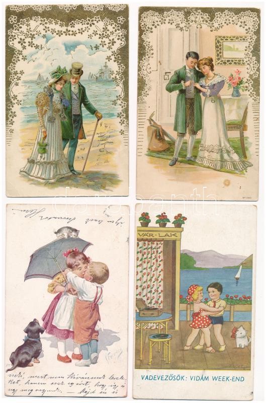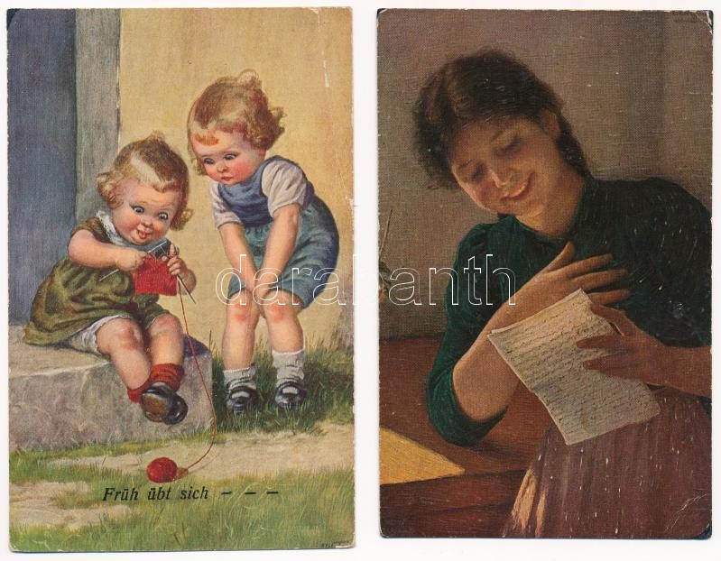 Leírás: 35 db RÉGI motívum képeslap vegyes minőségben: humor, gyerek, művész / 35 pre-1945 motive postcards in mixed quality: art, humour, children