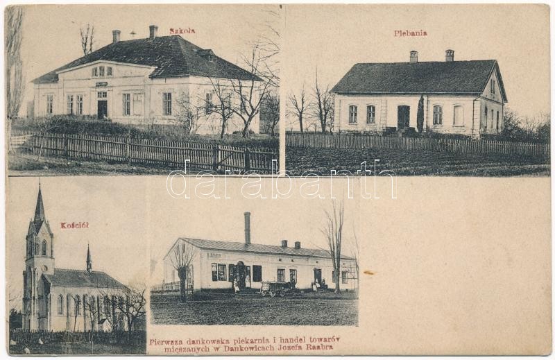 Dankowice, Szkola, Plebania, Kosciól, Pierwsza dankowska pekarnia i handel towaróv mieszanych w Dankowicach Jozefa Raabra / school, parish, church, bakery and shop of Jozef Raabr (fl)