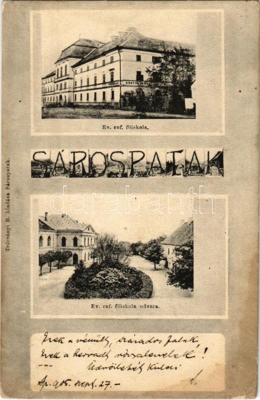 Leírás: 1905 Sárospatak, Református főiskola, Főiskolai könyvnyomda, udvar. Trócsányi B. kiadása (fl)