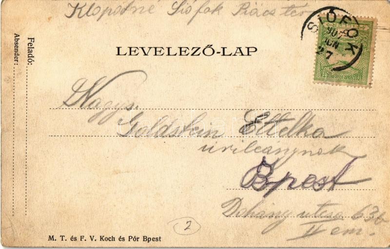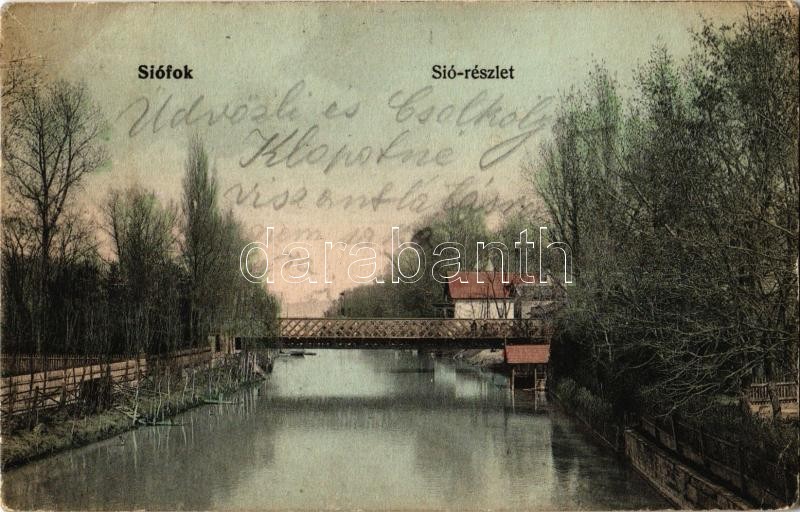 Leírás: 1907 Siófok, Sió részlet, híd. M. T. és F. V. Koch és Pór (kis szakadás / small tear)