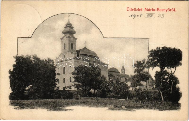 1908 Máriabesnyő (Gödöllő), templom (EK) https://www.darabanth.com/hu/407-Gyorsarveres/407.0/Kepeslapok/Magyarorszag~1000004/1908-Mariabesnyo-Godollo-templom-EK~II2518919
