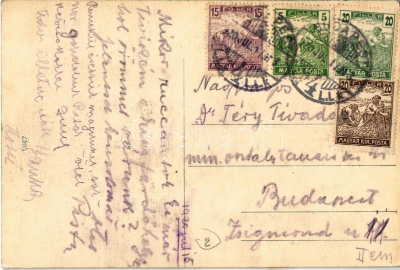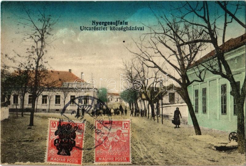 Leírás: 1920 Nyergesújfalu, utca, községháza. TCV card + hatszínű bélyeg