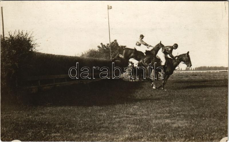 Leírás: 1927 Budapest IV. Káposztásmegyer, Hadseregi akadályverseny, lóverseny. Faragó fényképész Újpest, photo