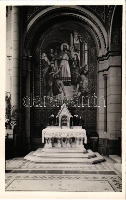 Leírás: Budapest IX. Ferencváros, Bakáts téri Assisi Szent Ferencről nevezett plébániatemplom Szent István oltára (festette Lotz Károly)