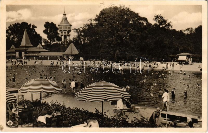 Leírás: Budapest XIII. Margitszigeti strandfürdő, fürdőzők (fa)