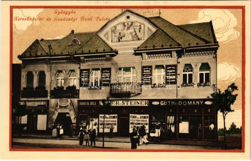 Gyöngyös, Kereskedelmi és Gazdasági Bank palota, Guth és Domány, Horny... https://www.darabanth.com/hu/407-Gyorsarveres/407.0/Kepeslapok/Magyarorszag~1000004/Gyongyos-Kereskedelmi-es-Gazdasagi-Bank-palota-Guth-es-Domany-Hornyak-Bela-Feher-es-St~II2514287