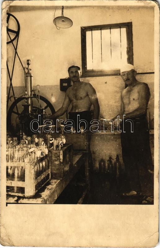 Ismeretlen város, szódaüzem belső munkásokkal. photo (fl) https://www.darabanth.com/hu/407-Gyorsarveres/407.0/Kepeslapok/Magyarorszag~1000004/Ismeretlen-varos-szodauzem-belso-munkasokkal-photo-fl~II2521313