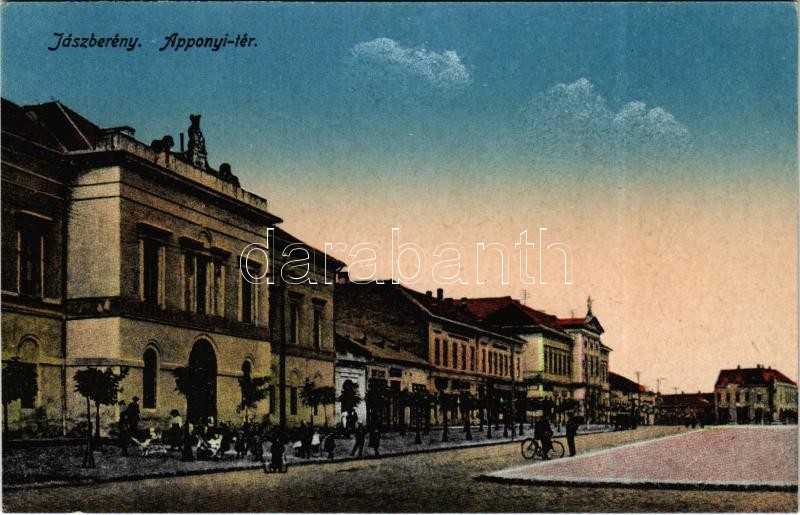 Jászberény, Apponyi tér, üzletek. Farkas A. J. kiadása https://www.darabanth.com/hu/407-Gyorsarveres/407.0/Kepeslapok/Magyarorszag~1000004/Jaszbereny-Apponyi-ter-uzletek-Farkas-A-J-kiadasa~II2514467