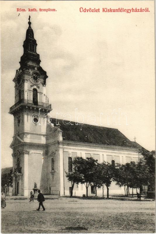 Kiskunfélegyháza, Római katolikus templom. Feuer Mihály kiadása https://www.darabanth.com/hu/407-Gyorsarveres/407.0/Kepeslapok/Magyarorszag~1000004/Kiskunfelegyhaza-Romai-katolikus-templom-Feuer-Mihaly-kiadasa~II2516212
