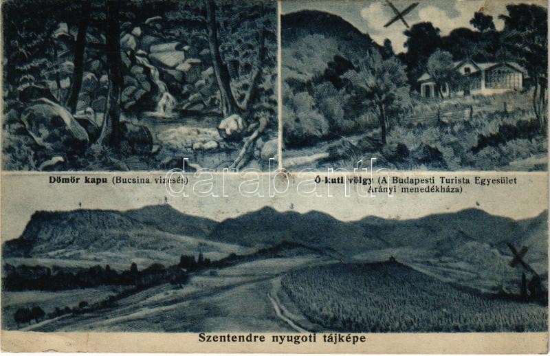 Leírás: Szentendre, Dömör kapu (Bucsina vízesés), Ó-kúti völgy (Budapesti Turista Egyesület Arányi menedékháza), nyugati látkép