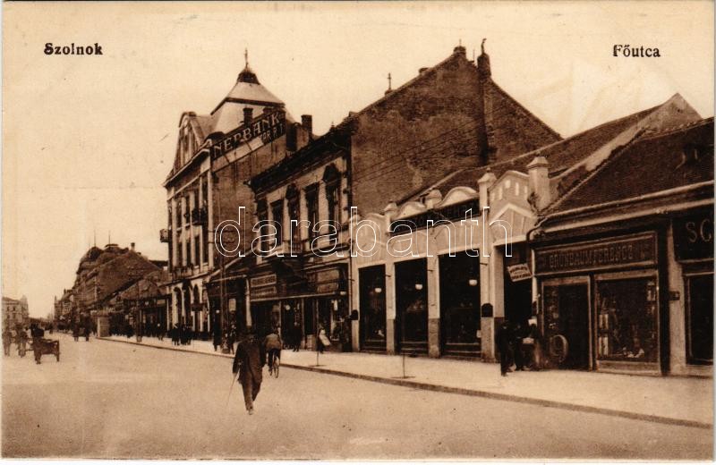 Szolnok, Fő utca, Korzó Kávéház, Grünbaum Ferenc üzlete, Népbank Takar... https://www.darabanth.com/hu/407-Gyorsarveres/407.0/Kepeslapok/Magyarorszag~1000004/Szolnok-Fo-utca-Korzo-Kavehaz-Grunbaum-Ferenc-uzlete-Nepbank-Takarekpenztar-rt~II2514704