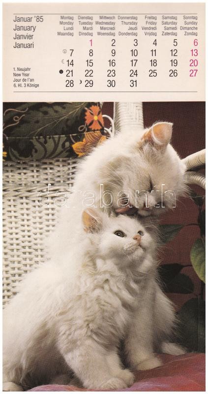 1985 Macskák naptár - modern képeslapfüzet 14 képeslappal / Farbige Ka... https://www.darabanth.com/hu/407-Gyorsarveres/407.0/Kepeslapok/Modern-Kepeslap-Tetelek~1000003/1985-Macskak-naptar-modern-kepeslapfuzet-14-kepeslappal-Farbige-Katzen-Cats-calendar-po~II2513824