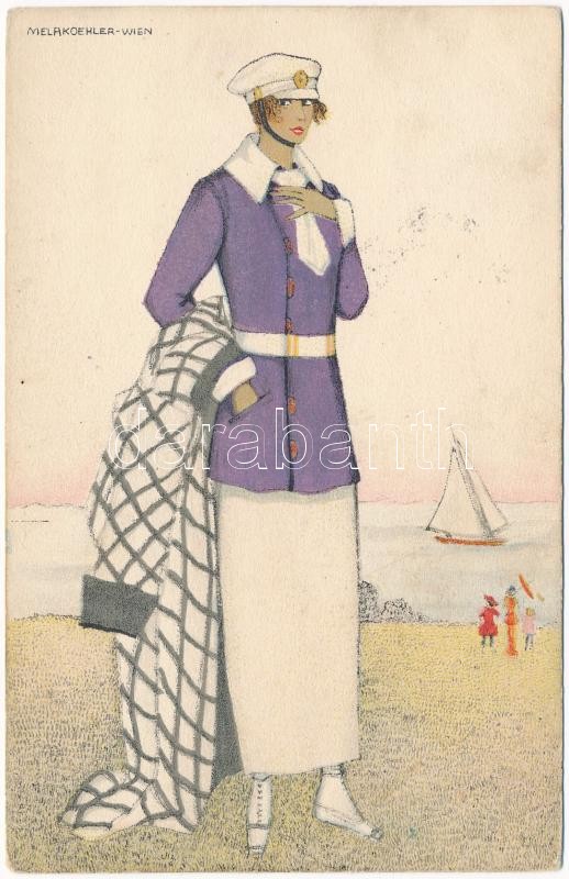 1918 Lady on the beach. B.K.W.I. 187-3. s: Mela Koehler https://www.darabanth.com/hu/407-Gyorsarveres/407.0/Kepeslapok/Muveszlapok~1000069/1918-Lady-on-the-beach-BKWI-187-3-s-Mela-Koehler~II2520212