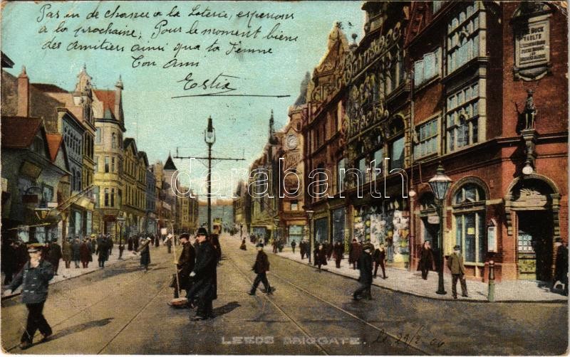 Leeds, Briggate, street view (EK) https://www.darabanth.com/hu/407-Gyorsarveres/407.0/Kepeslapok/Nagy-Britannia~1000068/Leeds-Briggate-street-view-EK~II2517279