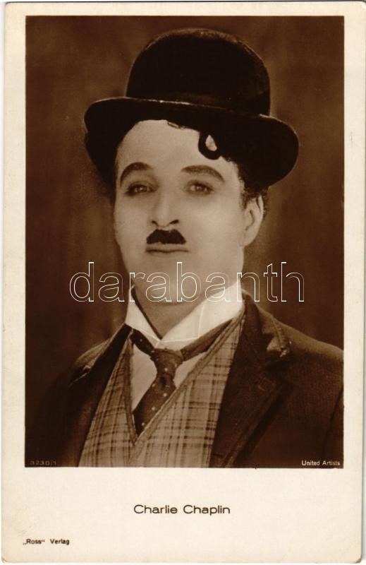 Charlie Chaplin. Ross Verlag 3230/1. https://www.darabanth.com/hu/407-Gyorsarveres/407.0/Kepeslapok/Szinesz~1000085/Charlie-Chaplin-Ross-Verlag-32301~II2519256