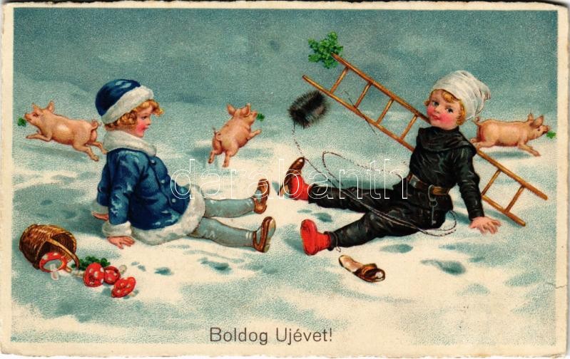 1934 Boldog újévet! Kéményseprő / New Year greeting, chimney sweeper. ... https://www.darabanth.com/hu/407-Gyorsarveres/407.0/Kepeslapok/Udvozlolapok-Unnepek~1000090/1934-Boldog-ujevet-Kemenysepro-New-Year-greeting-chimney-sweeper-4702-1-litho~II2519264