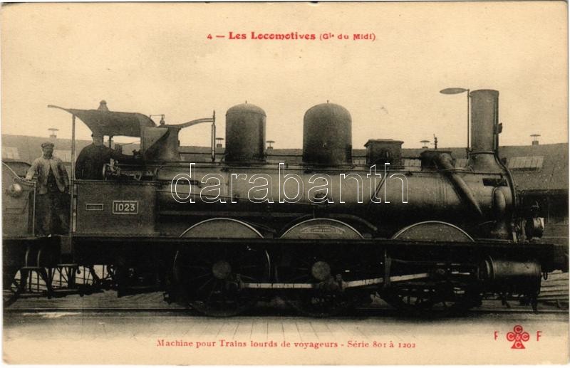 Leírás: Machine pour Trains lourds de voyageurs. Serie 801 a 1202. Les Locomotives (Midi) / French Railways locomotive