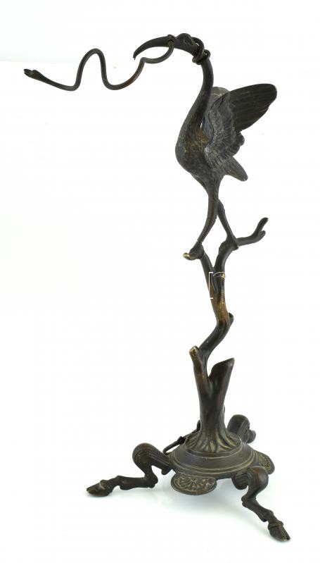 Leírás: Bronz figurális zsebóratartó, m: 31 cm