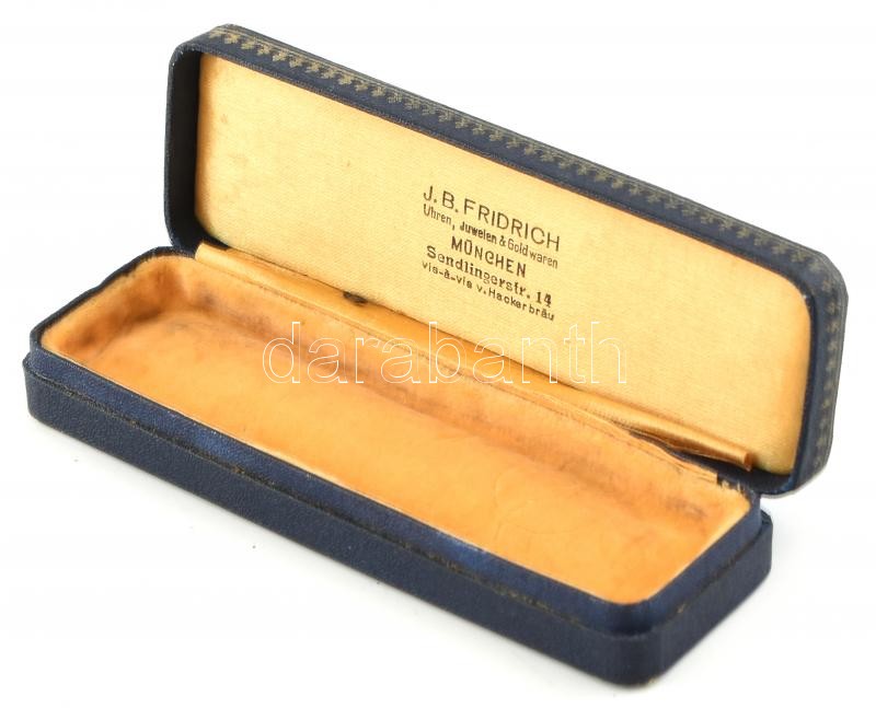 Régi ékszeres doboz, J. B. Fridrich München felirattal. 13x4cm https://www.darabanth.com/hu/407-Gyorsarveres/407.0/Mutargy-papirregiseg-egyeb/Bolhapiac~12/Regi-ekszeres-doboz-J-B-Fridrich-Munchen-felirattal-13x4cm~II2514495