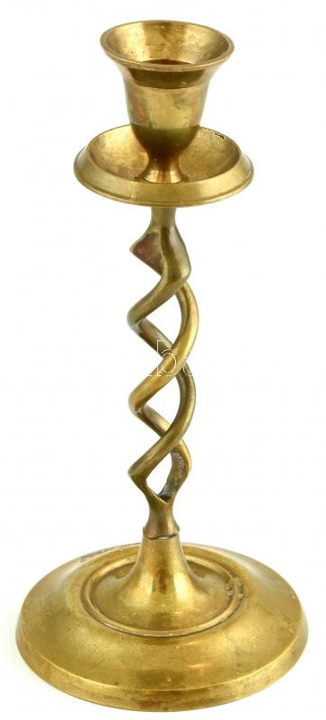 Leírás: Réz gyertyatartó, kettős spirál vonalú résszel, kopott, m: 21 cm