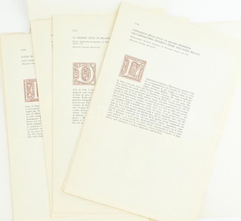 Leírás: Milano Nei Secoli, régi térképek modern másolatai, 8 t., olasz nyelvű kísérőszöveggel, kissé sérült papírmappában