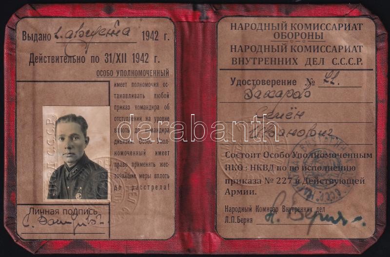 1942 Orosz nyelvű fényképes háborús igazolvány https://www.darabanth.com/hu/407-Gyorsarveres/407.0/Mutargy-papirregiseg-egyeb/Okmanyok~18/1942-Orosz-nyelvu-fenykepes-haborus-igazolvany~II2517232